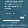 Experience the Strength of Joan’s Resolve: Inside the “Conquest Journal,” you’ll discover a wealth of inspirational quotes and insights inspired by the life and fearless determination of Joan of Arc herself. Immerse yourself in the wisdom of this legendary French heroine as you chart your daily path towards triumph and self-discovery.