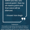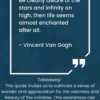 Experience the Genius of Van Gogh: Within the pages of the “Conquest Journal,” you’ll discover a wealth of inspirational quotes and takeaways inspired by the life and art of Vincent van Gogh. Immerse yourself in the wisdom of this iconic painter, visionary artist, and creative soul as you navigate your daily journey towards success.