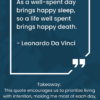 Experience the Genius of Leonardo: Inside the “Conquest Journal,” you’ll discover a treasure trove of insightful quotes and takeaways inspired by the life and works of Leonardo da Vinci. As you fill its pages, you’ll be guided by the spirit of this brilliant artist, scientist, and inventor, encouraging you to approach each day with boundless curiosity and creativity.