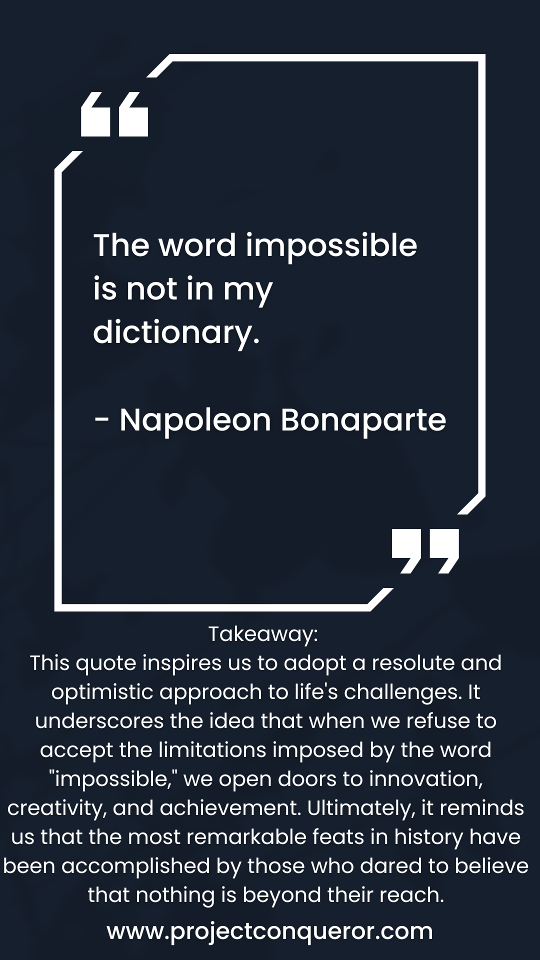 Experience the Power of Napoleon’s Wisdom: Inside the “Conquest Journal,” you’ll find a treasure trove of inspirational quotes and takeaways drawn from the life and leadership of Napoleon himself. Immerse yourself in the wisdom of the legendary French emperor, general, and orator as you navigate your daily journey toward success.